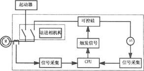 HP系列靜止式進相器是串接在電機轉子回路中的,原理框圖如圖2。當電機運行時采集轉子電流和同步電壓信號,經微處理器CPU處理后給可控硅發出觸發信號,由可控硅組成的交-交變頻器降工頻電源變為和轉子電流同頻率的電勢疊加在電機轉子回路中,改變轉子電流與轉子電壓的相位關系,通過磁場進而改變電機定子電流與定子電壓相位關系,減小功率因數角,最終使電機本身的功率因數得以提高,定子電流得以下降。大大改善了電機的運行狀況。顯著降低了電機自身的損耗。